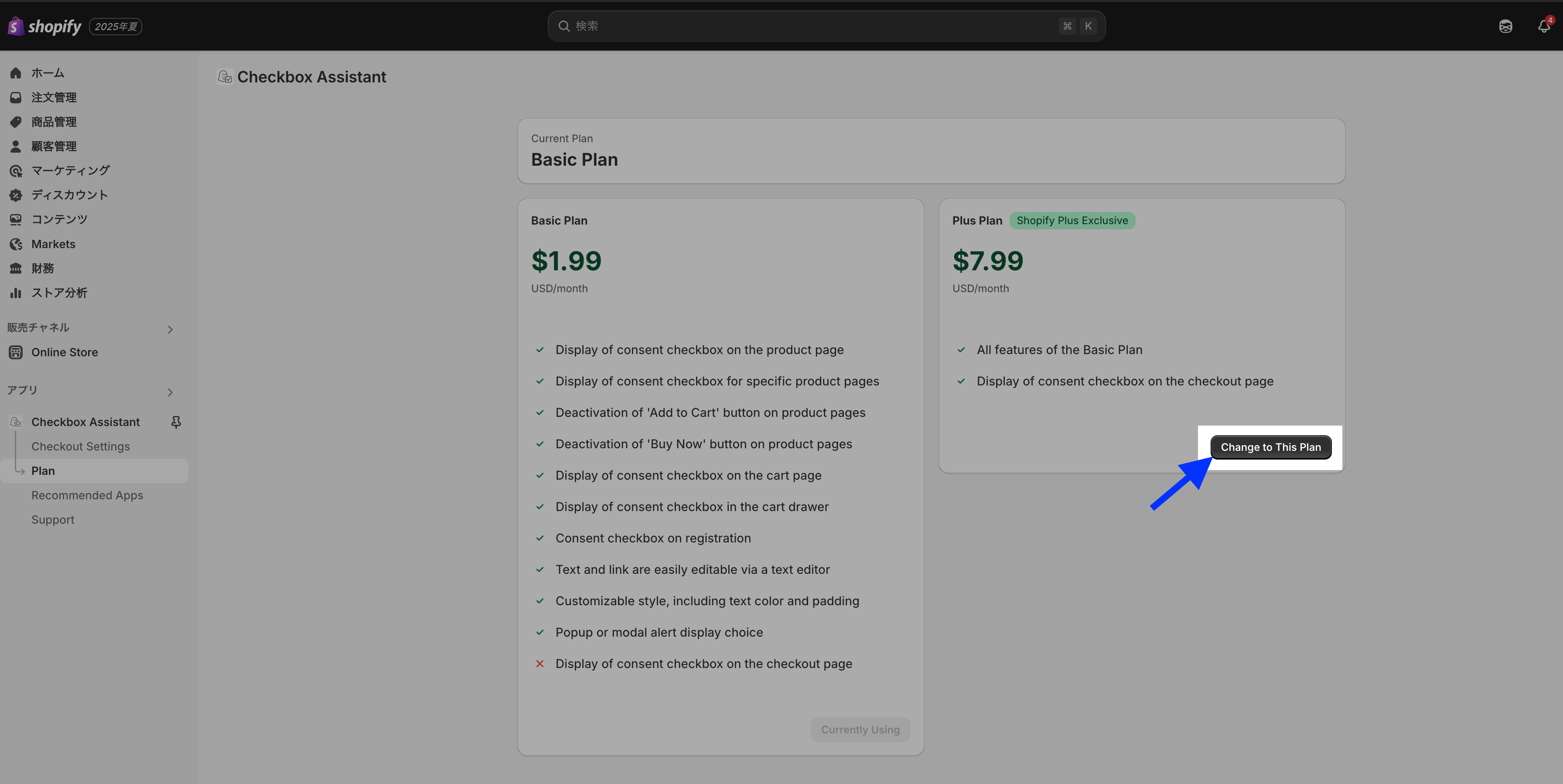 The Plus Plan is only available for Shopify Plus stores.This is because it uses Checkout UI Extensions, which are only supported on Shopify Plus.