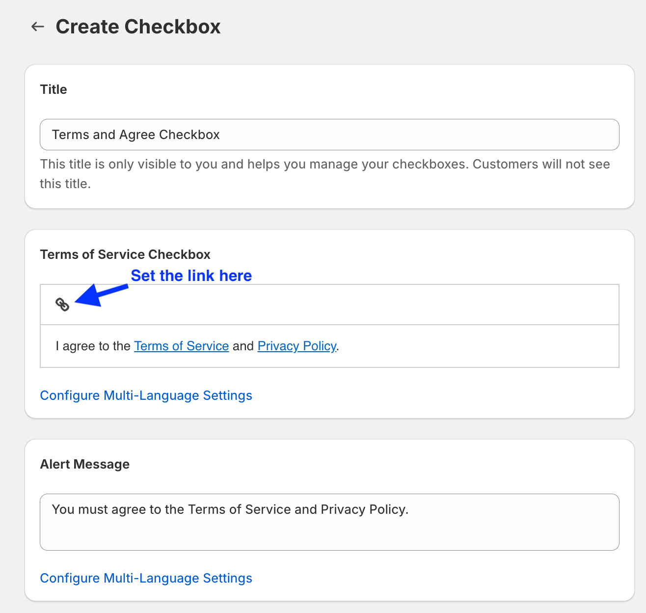 Checkbox text Click "Configure Multi-Language Settings" to support multiple languages.