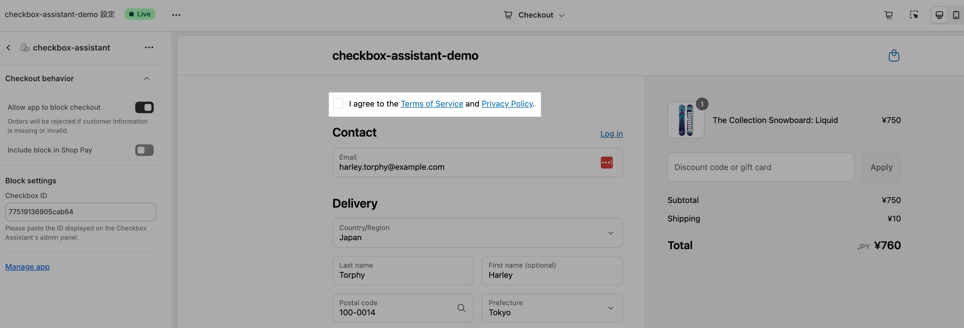 Note: The alert message cannot be previewed in the settings screen.Please test it on your store's actual checkout page.