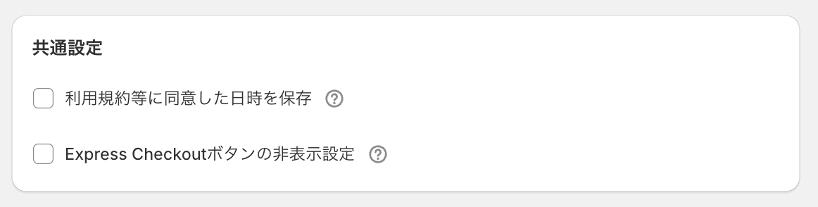 チェックボックスに、チェックをいれてない状態のときに、PayPal、Apple Pay、Google Pay等のExpress Checkoutボタンを非表示にする機能です。