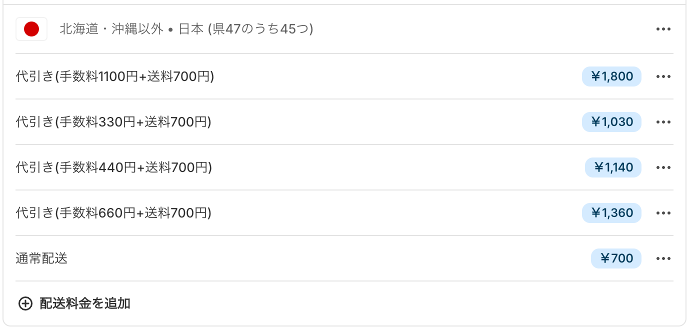 カートの合計金額が1円〜9,999円の場合、代引き手数料330円を設定