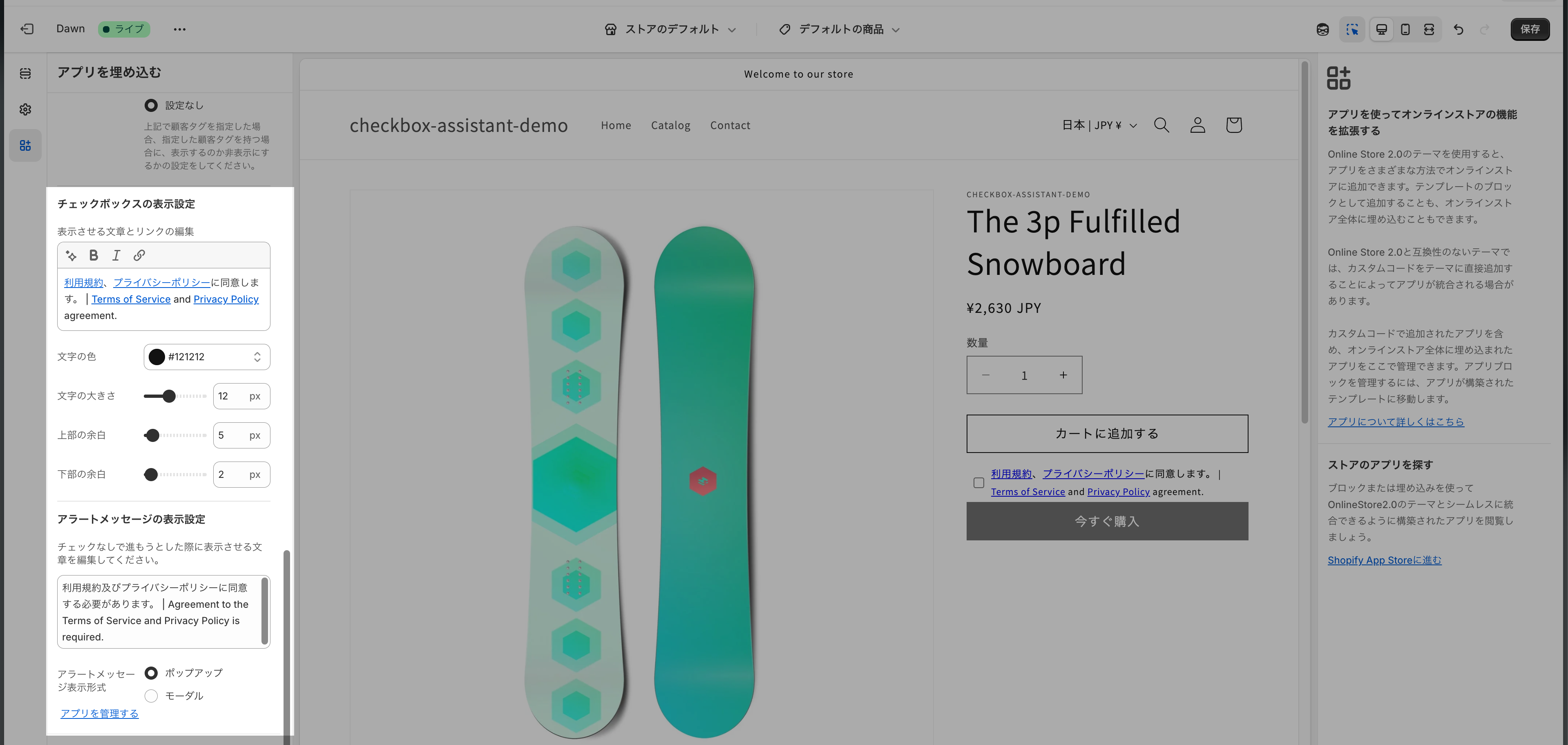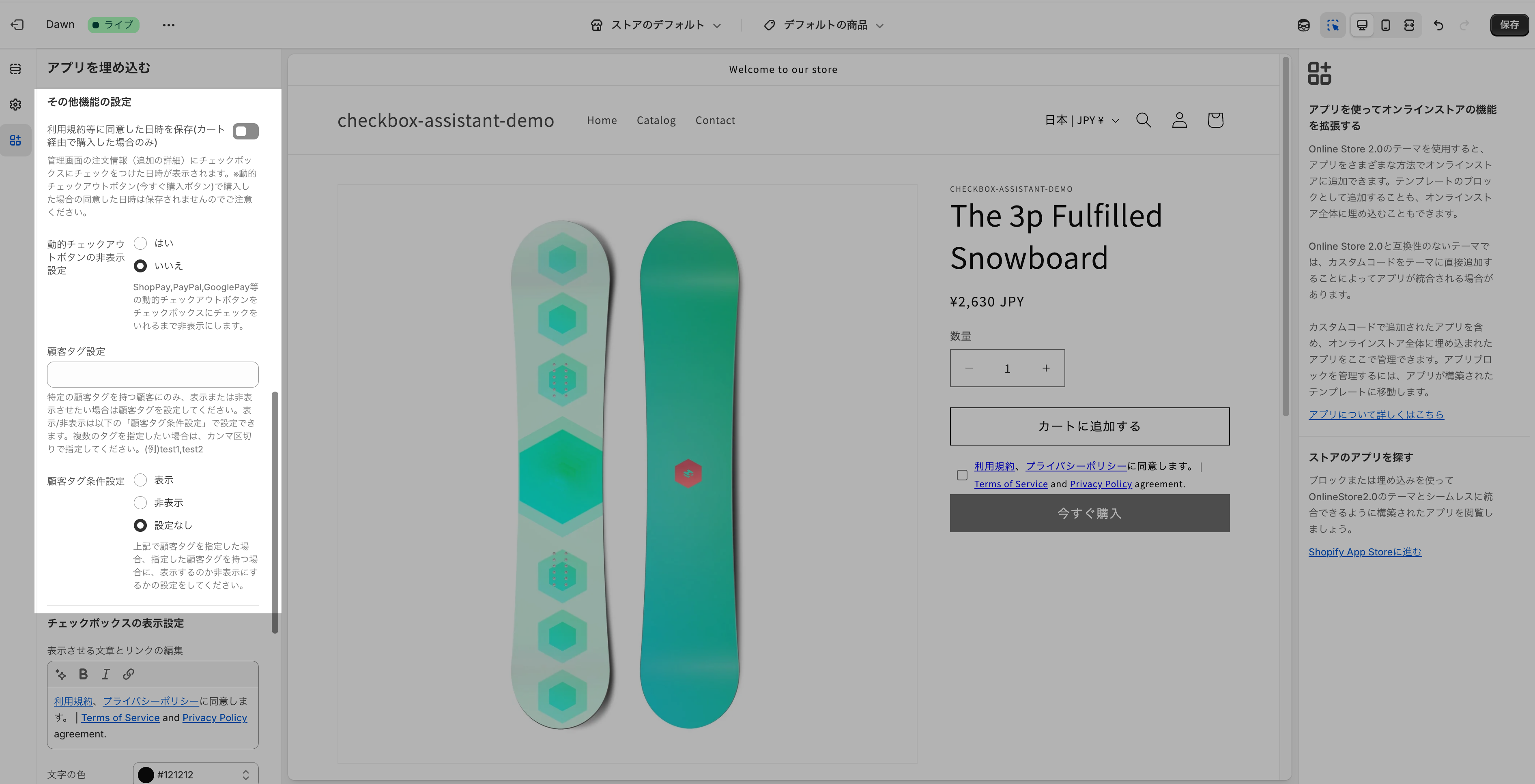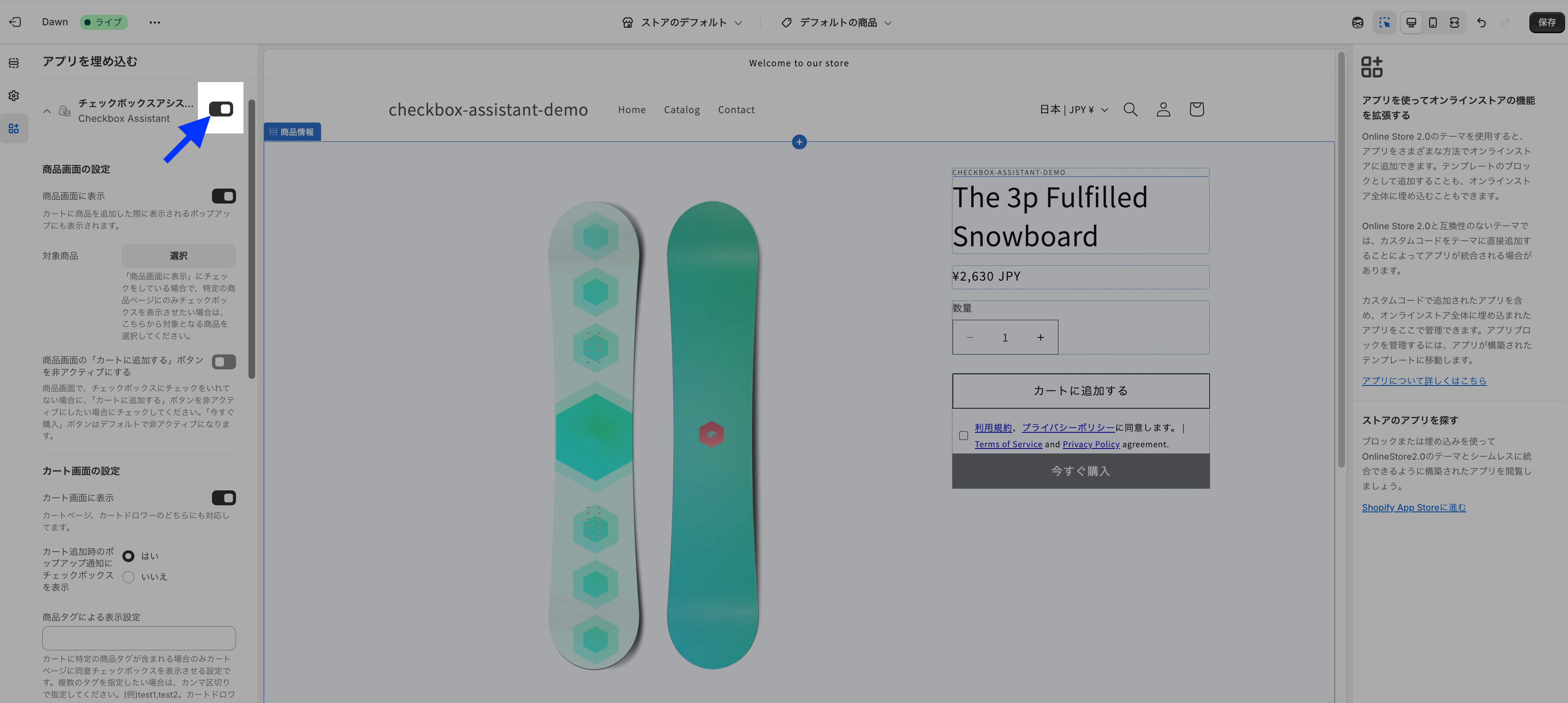 画面遷移時に自動で有効化され、デフォルトのチェックボックスが表示されます。