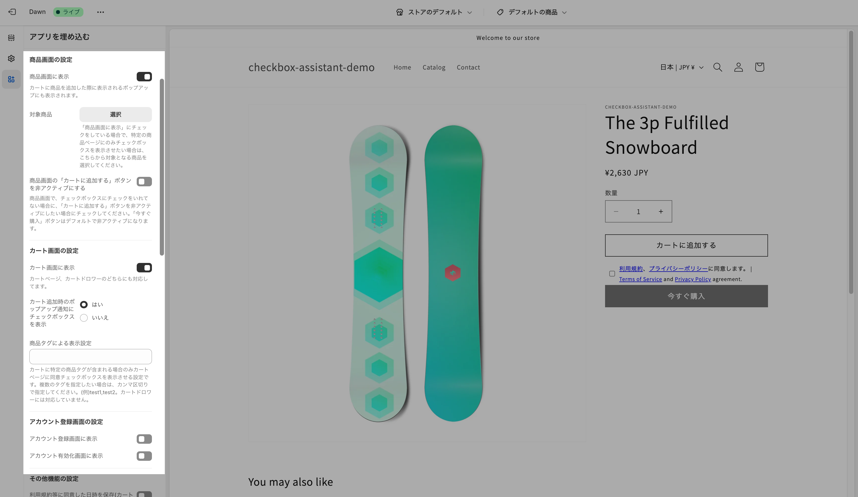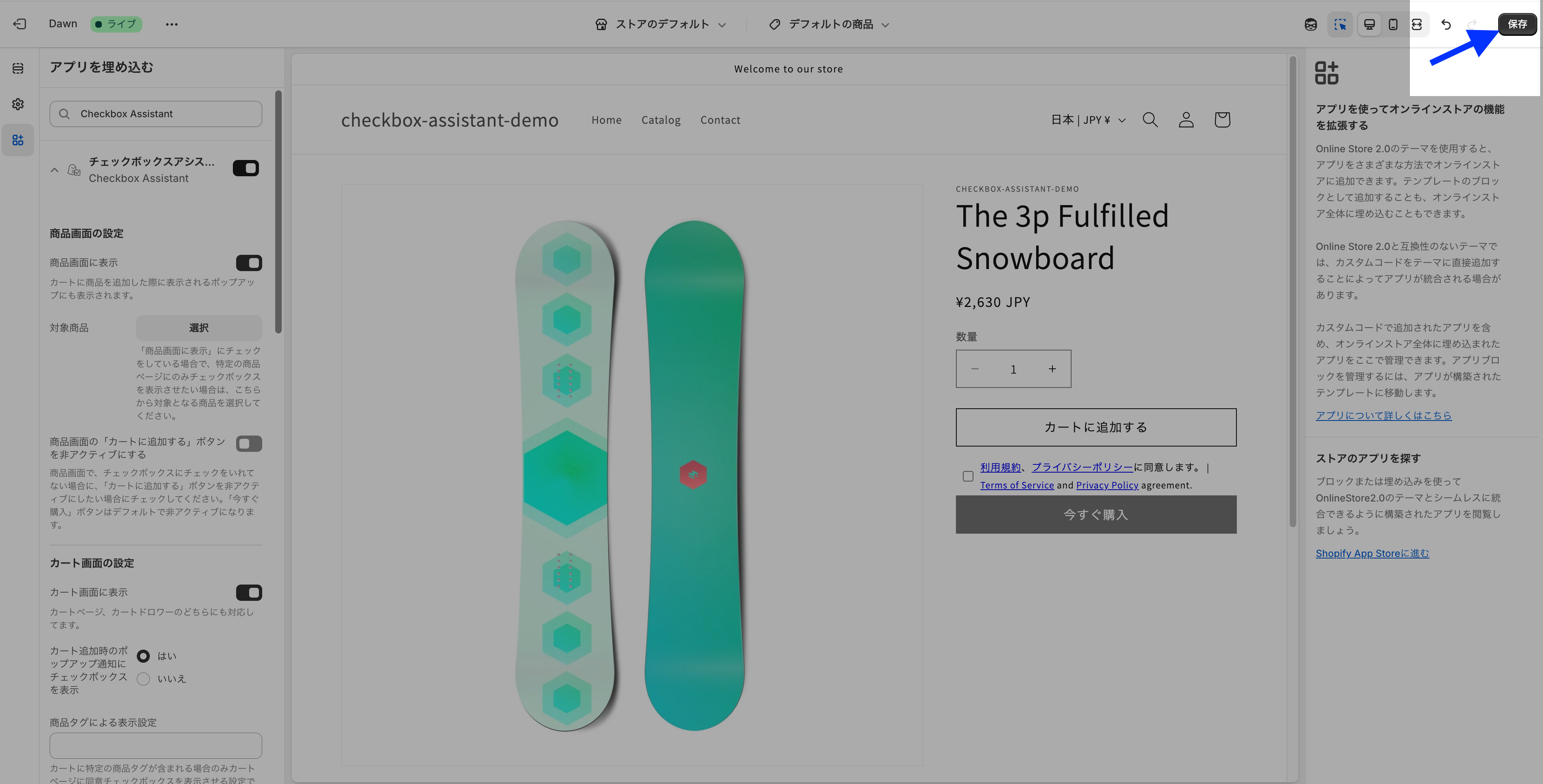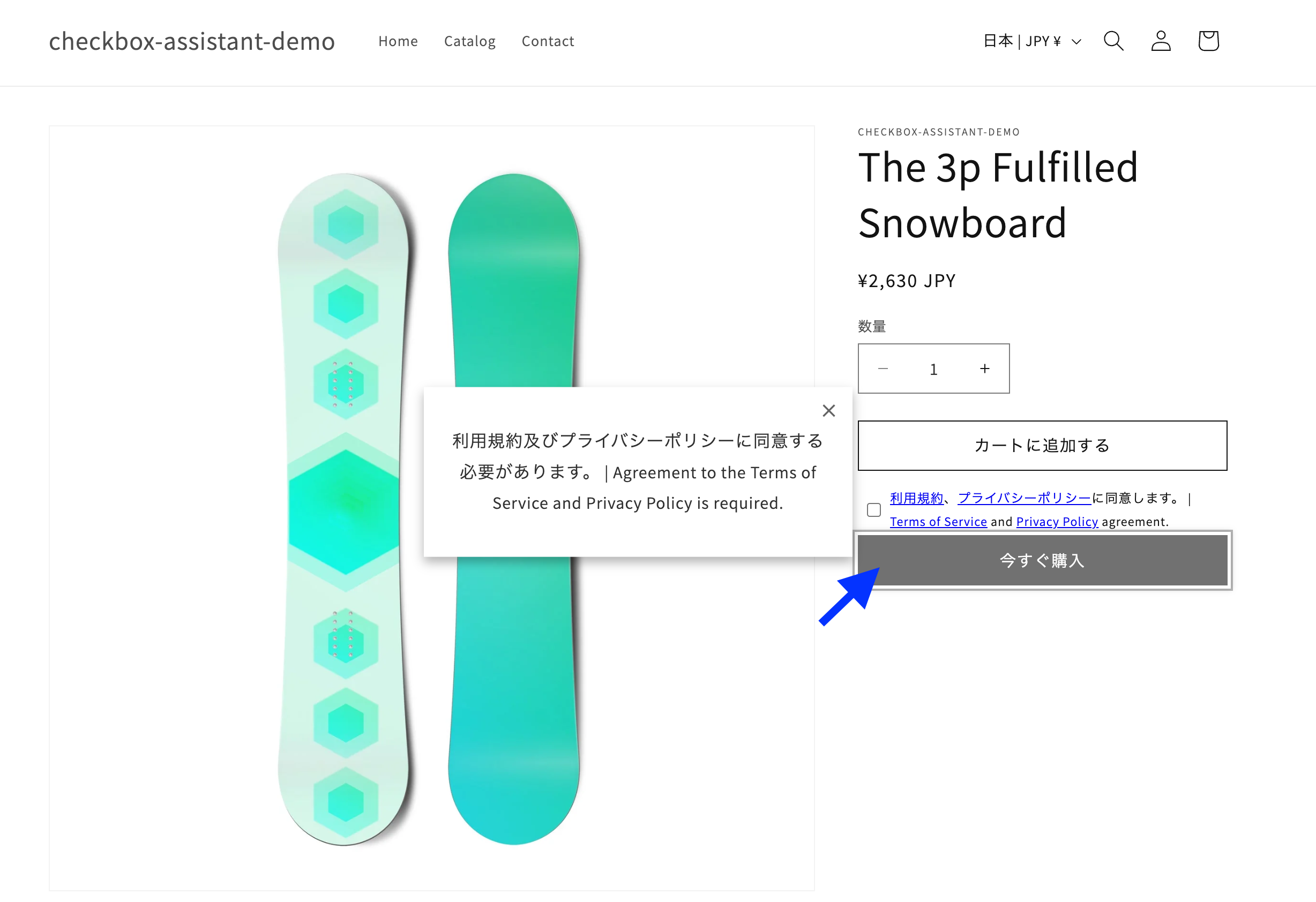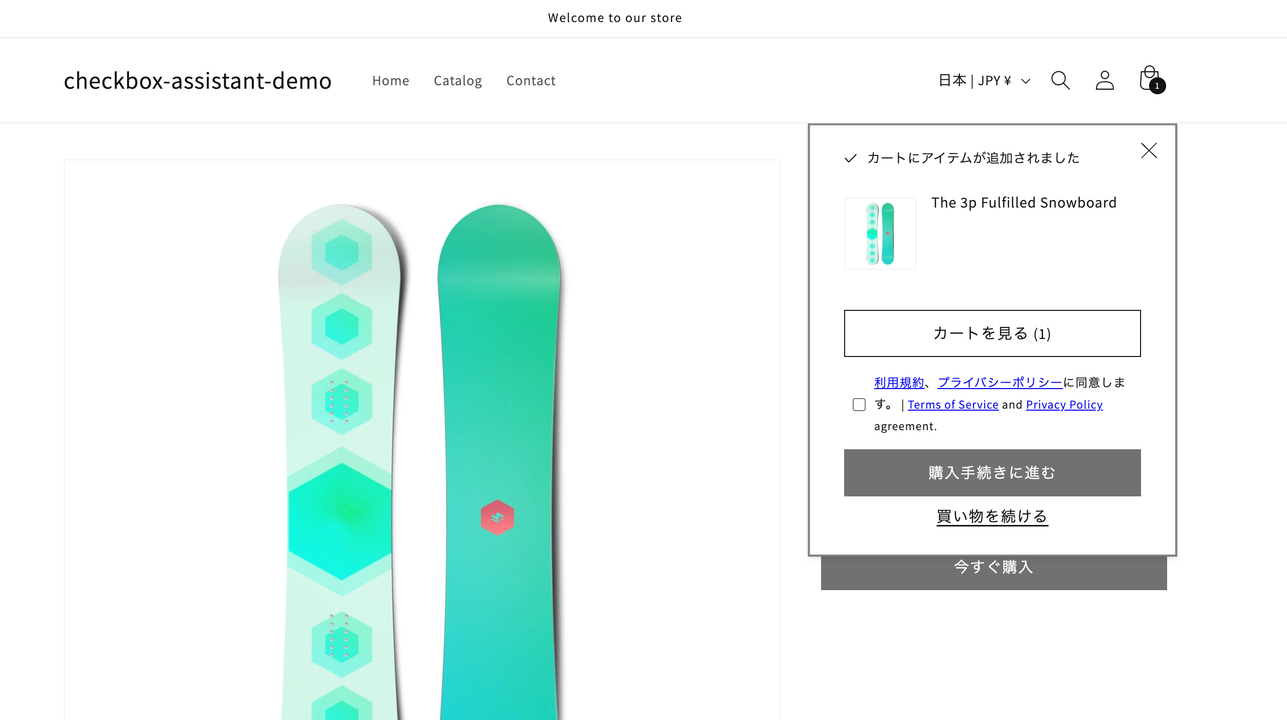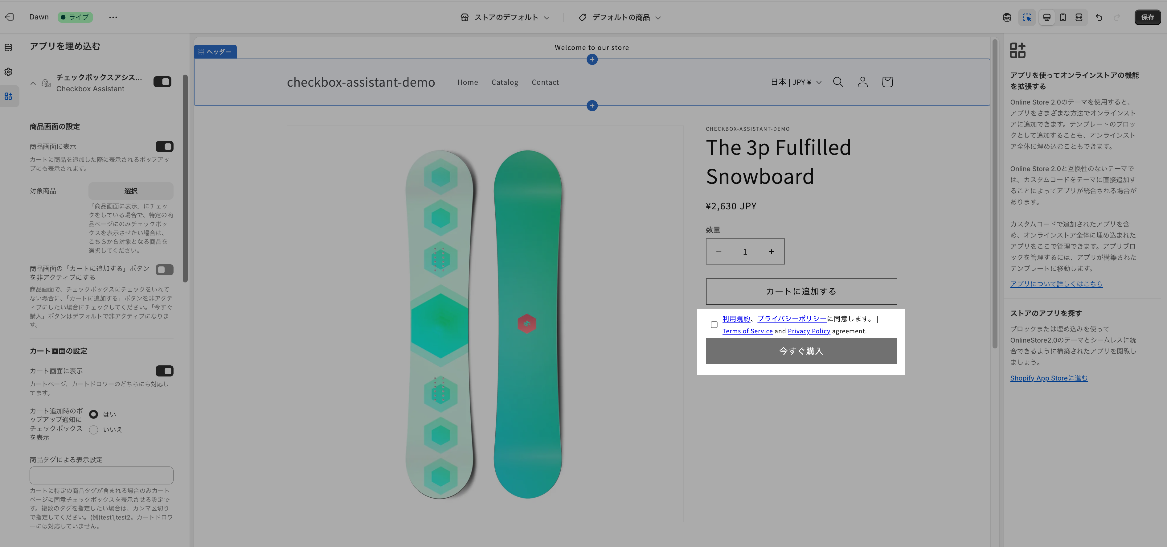 テーマエディターではなく、以下より実際のストアに遷移して、動作確認をお願いします。(テーマエディターの場合、今すぐ購入ボタンを押した場合に、ブロックされずに、遷移してしまうため。)
