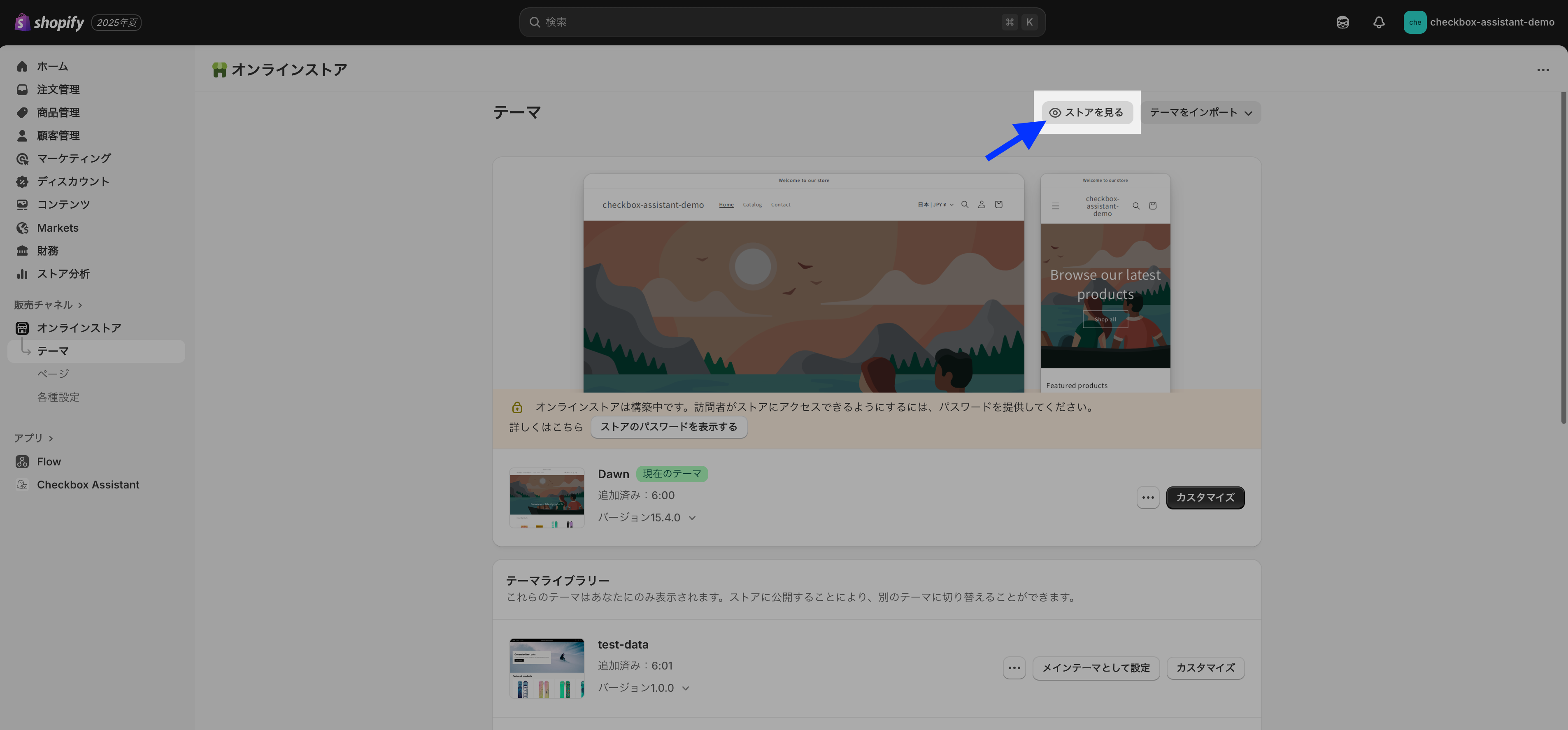 検証用のテーマで確認したい場合は、検証用のテーマを選択してください。