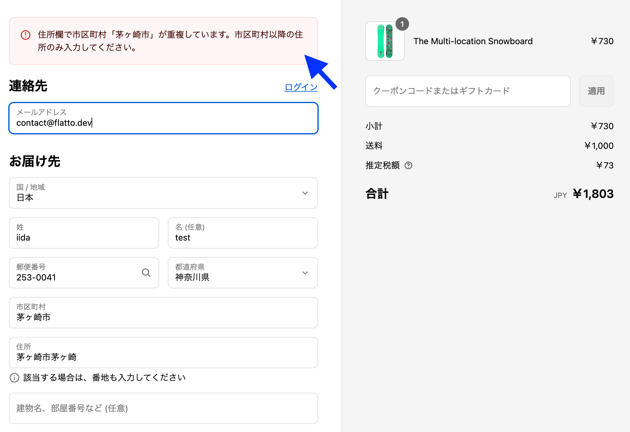 バリデーションが発動してなさそうなときは、「メールアドレス」「郵便番号」「名前(姓)」「名前(名)」を入力してから再度確認してみてください。