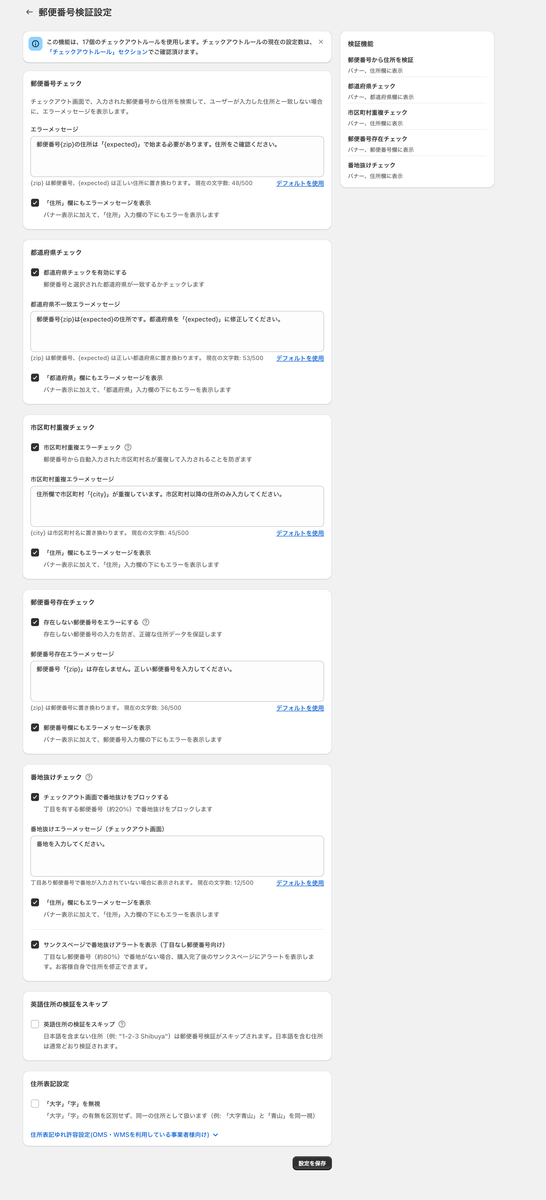 この機能は、17個のチェックアウトルールを使用します。